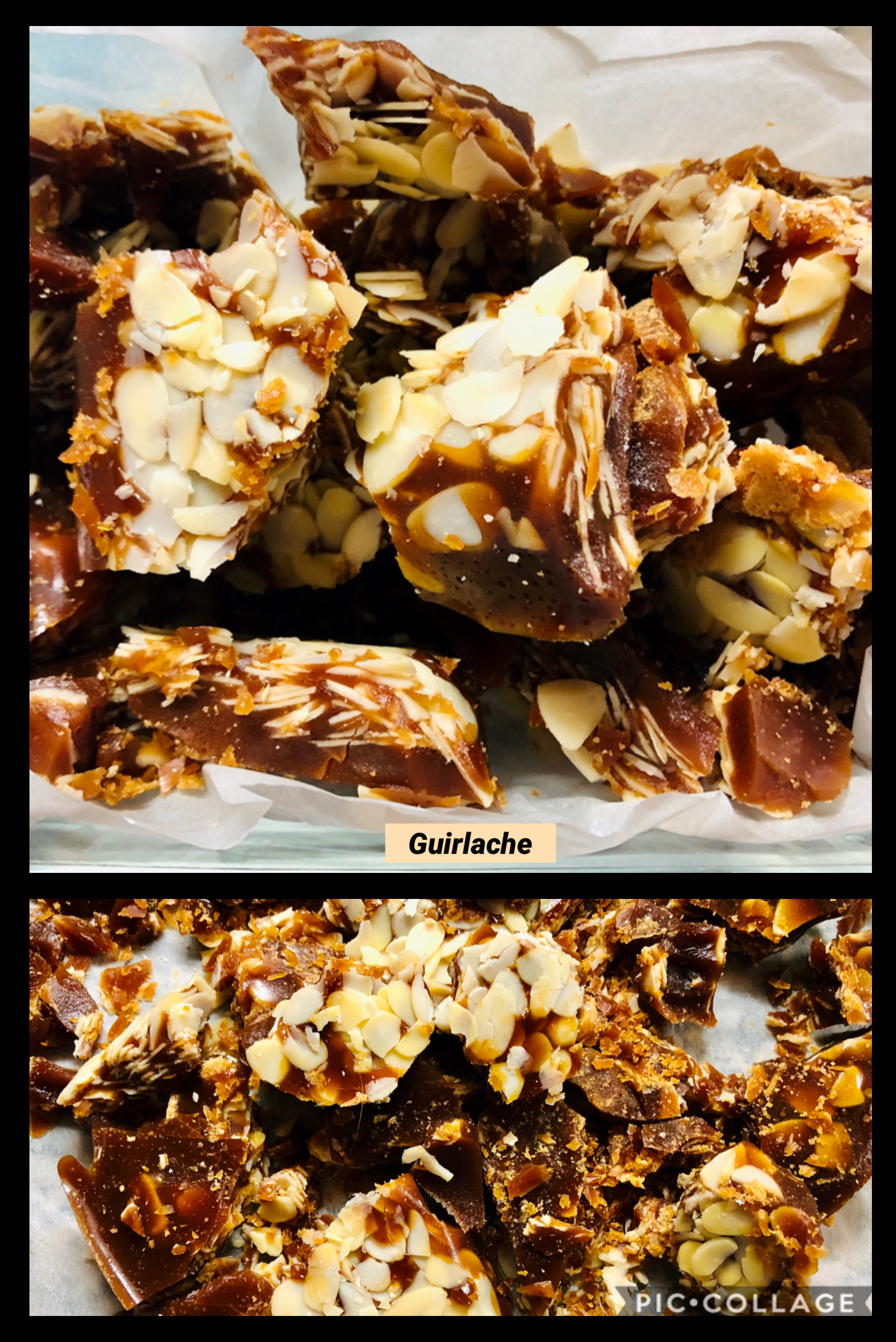 Una vez termino, vuelco la salsa encima de las almendras reservadas y dejo que se enfríe del todo. Cuando se hace un bloque, con la mano del almuerzo o cualquier utensilio de cocina que os permita golpear, golpear la plancha resultante para partirla en trozos como se ve en la foto. Meter en un tarro de cristal hermético para conservarlo bien.