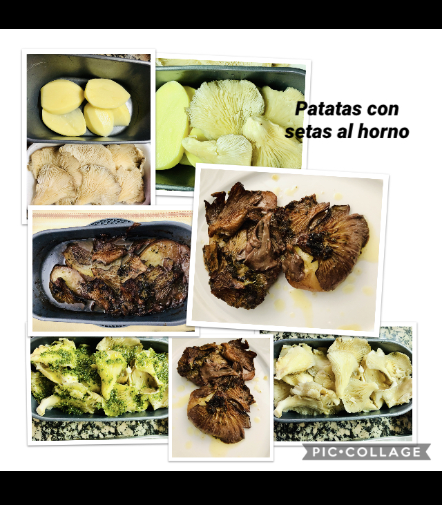 5.- Meter al horno a 170 grados, aproximadamente 35 minutos. Dependera el tiempo del grosor de las patatas. Una vez comprobemos que esta la patata blanda y la setas doradas, sacar y servir caliente.