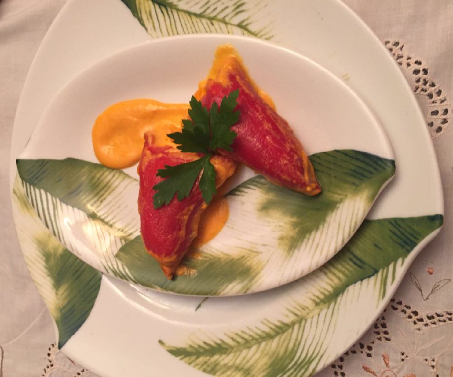 PIMIENTOS DEL PIQUILLO RELLENO DE BRANDADA DE BACALAO CON SALSA DE PIMIENTOS