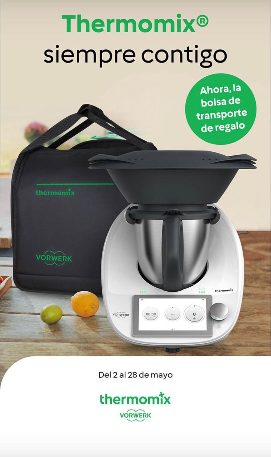 Bienvenidos al mes de Mayo y con ello el buen tiempo, thermomix siempre esta pensando en el cliente y ahora desde el día 1 al 28 de Mayo al comprar el thermomix tienes de regalo la bolsa de transporte para que puedas viajar con ella.
